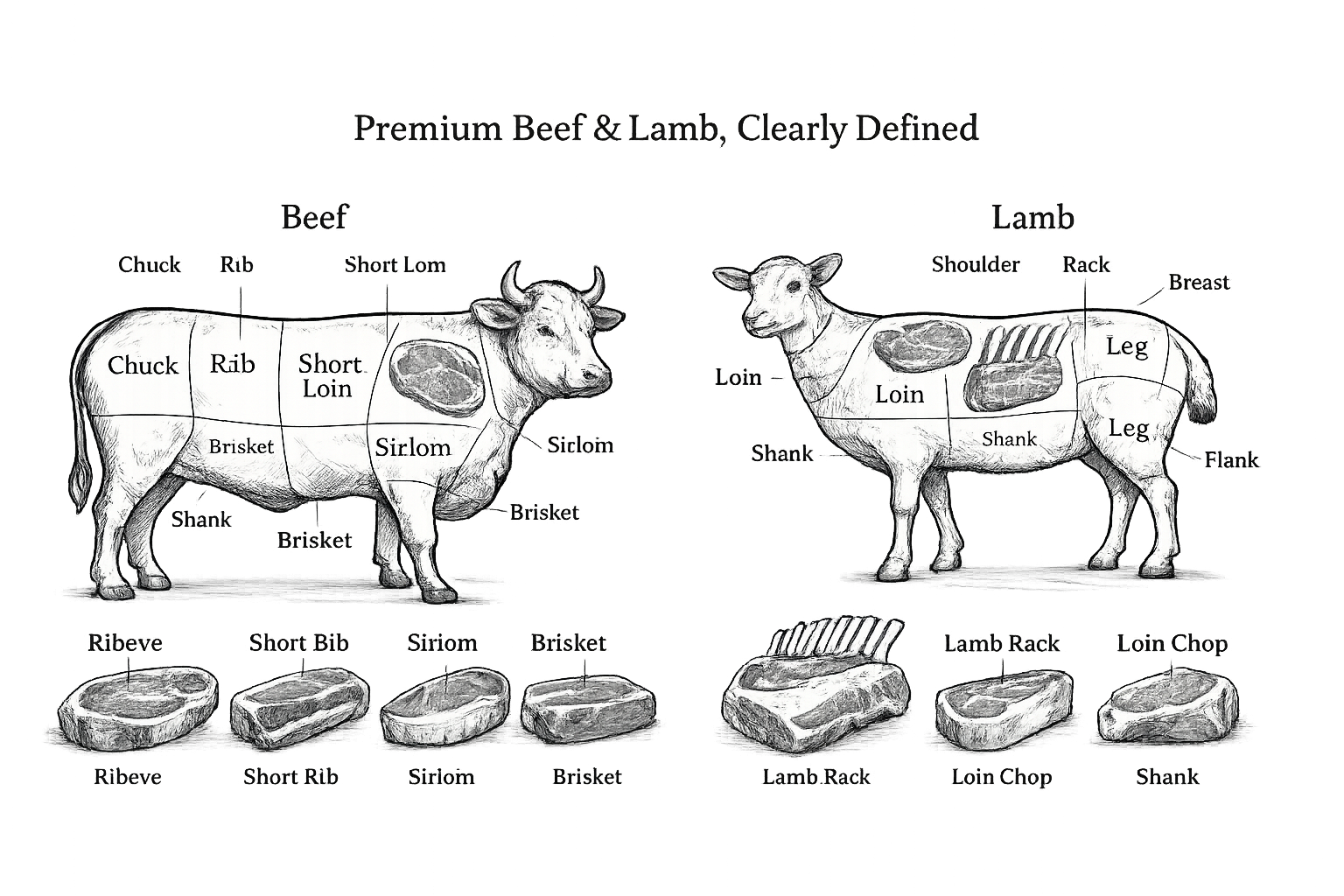 Restaurant-grade beef & lamb, clean-cut and ready to cook.